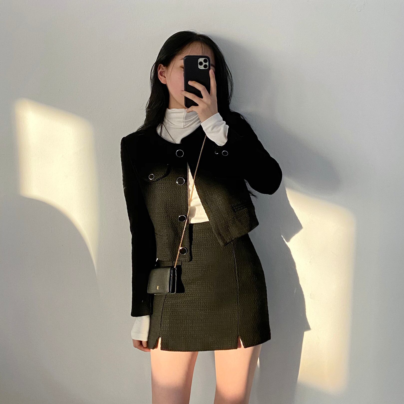 ブラックカラーレトロツイードセットアップ。