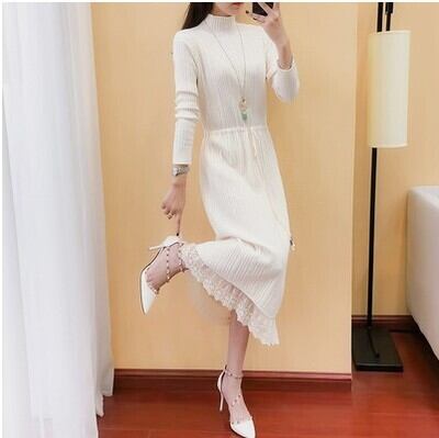 冬 ニット セーター ワンピース ワンピース プルオーバー ロングスカート ワンピドレス 袖あり 長袖 ランタンスリーブ ハイネック 襟なし Aライン レギュラー レース ふわふわ ウエストゴム 伸縮性 タイプA ニット 薄手 異素材MIX レース 大人可愛い 大人 おしゃれ 大人女子 ガーリー 無地 冬 レディース 女性用 ママ 女の子 OL デート 休日 パーティー レストラン 重ね着 スタイル 暖かい インスタ映え S M L XL 2XL 3XL 画像1 画像2 画像3 画像4 画像5 画像6
