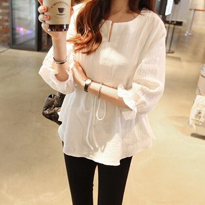 トップス シャツ カットソー ブラウス ラウンドネック 七分袖 パフスリーブ ゆったり レディース きれいめ 上品 エレガント 大きめ S М L XL 2XL 3XL ホワイト 白 ブラック 黒 お洒落 オシャレ かわいい 大人可愛い 20代 30代 40代 50代 ОL 通勤 シンプル カジュアル 着心地 春 夏 こなれ感 休日 お出かけ 買い物 公園 ふんわり 柔らか とろみ 女子会 デート 韓国 トレンド 流行 高級感 薄手 リネン 麻 綿 リボン リラックス 体型カバー 着痩せ 細見え