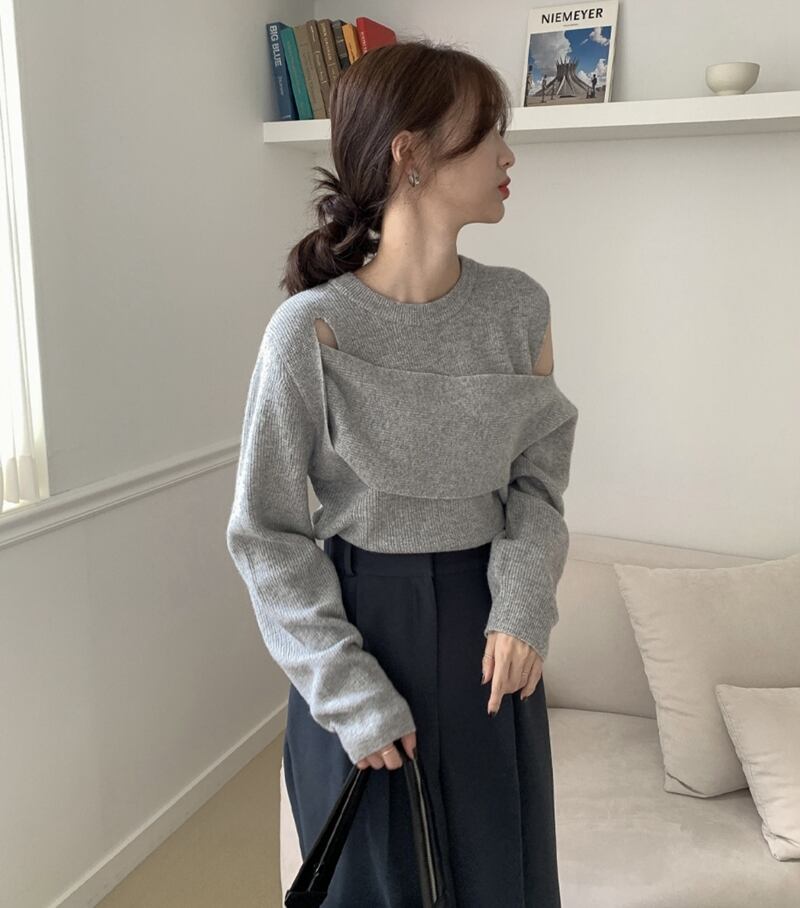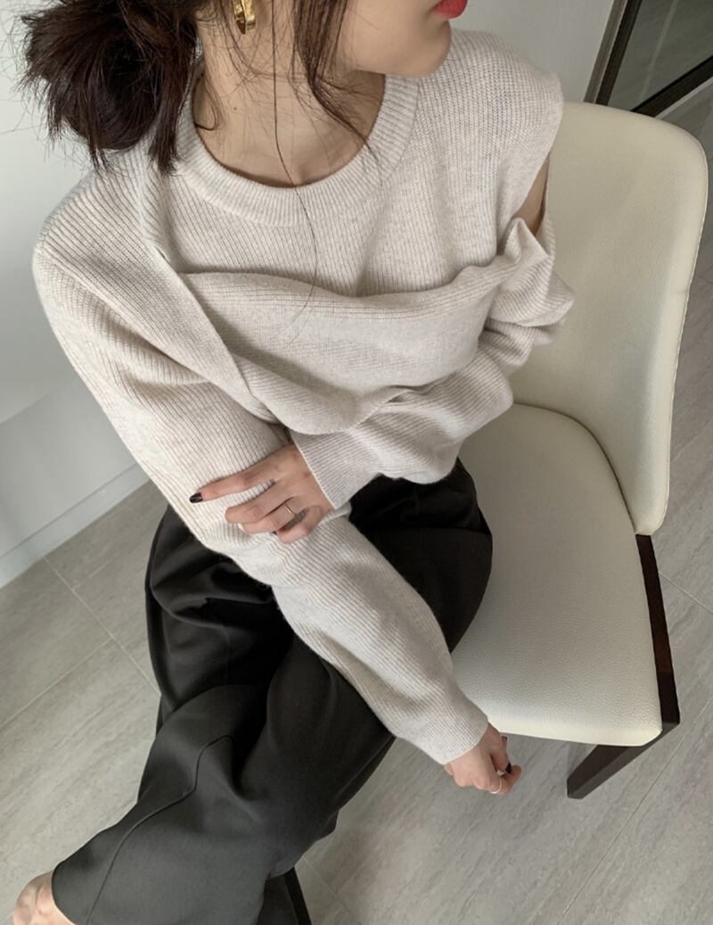 トップス レディース ニット セーター 袖あり 長袖 ラウンドネック 切り替えデザイン ドッキング 肩見せ 肩出し 大人可愛い きれいめ 大人 おしゃれ お洒落 かっこいい 大人女子 こなれ感 ラフ 個性的 クール セクシー モード 存在感 抜け感 ワンサイズ フリーサイズ オートミール グレー ワインレッド グリーン 緑 灰色 赤 無地 春 秋 冬 10代 20代 30代 40代 ママ 学生 通学 デート お出かけ 女子会 休日 イベント 旅行 モテ プレゼント ギフト 普段使い お揃い 双子 韓国