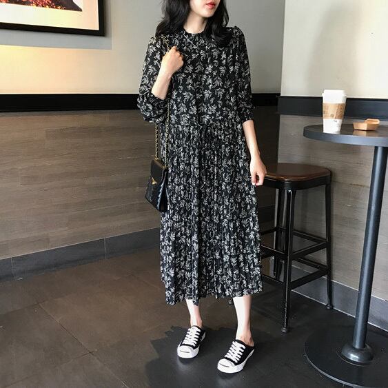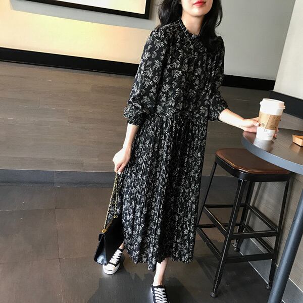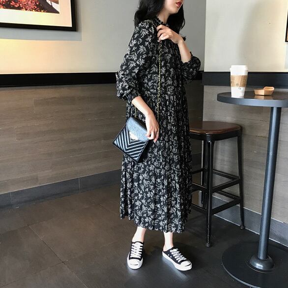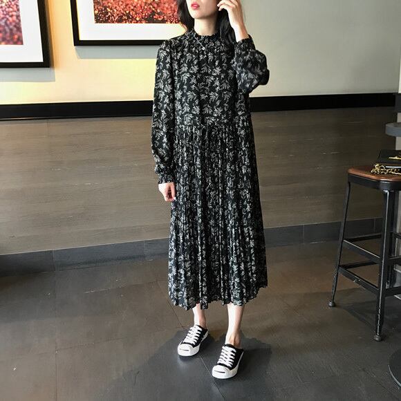 春秋 ファッション ドレス プルオーバー ロングスカート ミディスカート プリーツスカート ワンピドレス ロング丈 袖あり 長袖 パフスリーブ ラウンドネック 襟なし ふわふわ 伸縮性 薄手 異素材MIX かわいい 大人可愛い カジュアル 大人 お洒落 大人女子 ラブリー 個性的 モダン 無地 秋 冬 レディース 女性用 ママ オフィス ビジネス OL 通勤 デート 休日 イベント レストラン 重ね着 スタイル 楽ちん 暖かい インスタ映え S M L XL 2XL 画像1