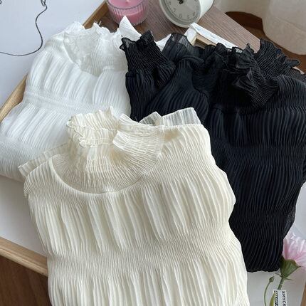 トップス ブラウス カットソー シフォン フリル 重ね着 インナー 透け感 長袖 ゆったり レディース きれいめ 上品 エレガント 大きめ ホワイト 白 黒 ブラック ベージュ 無地 お洒落 オシャレ かわいい 大人可愛い フェミニン 20代 30代 40代 50代 60代 ОL 通勤 シンプル カジュアル 春 秋 夏 こなれ感 休日 お出かけ 映え SNS 女子会 デート 韓国 トレンド 流行 高級感 清楚 Iライン ストレート 薄手 タイト スリム 細身 ギャザー ボリューム 裏地 日焼け 冷房対策