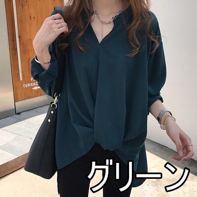 トップス ブラウス シフォン カットソー Vネック 長袖 ゆったり レディース きれいめ 上品 エレガント 大きめ 大きいサイズ М L XL 2XL 3XL お洒落 オシャレ かわいい 大人可愛い 20代 30代 40代 50代 ОL 通勤 仕事 オフィス シンプル カジュアル 春 秋 夏 こなれ感 休日 お出かけ 買い物 公園 女子会 韓国 トレンド 流行 Iライン ストレート 体型カバー 着痩せ 映え SNS とろみ ギャザー ふんわり 着回し 薄手 抜け感 絞り ラフ ホワイト 白 ブルー 青 緑