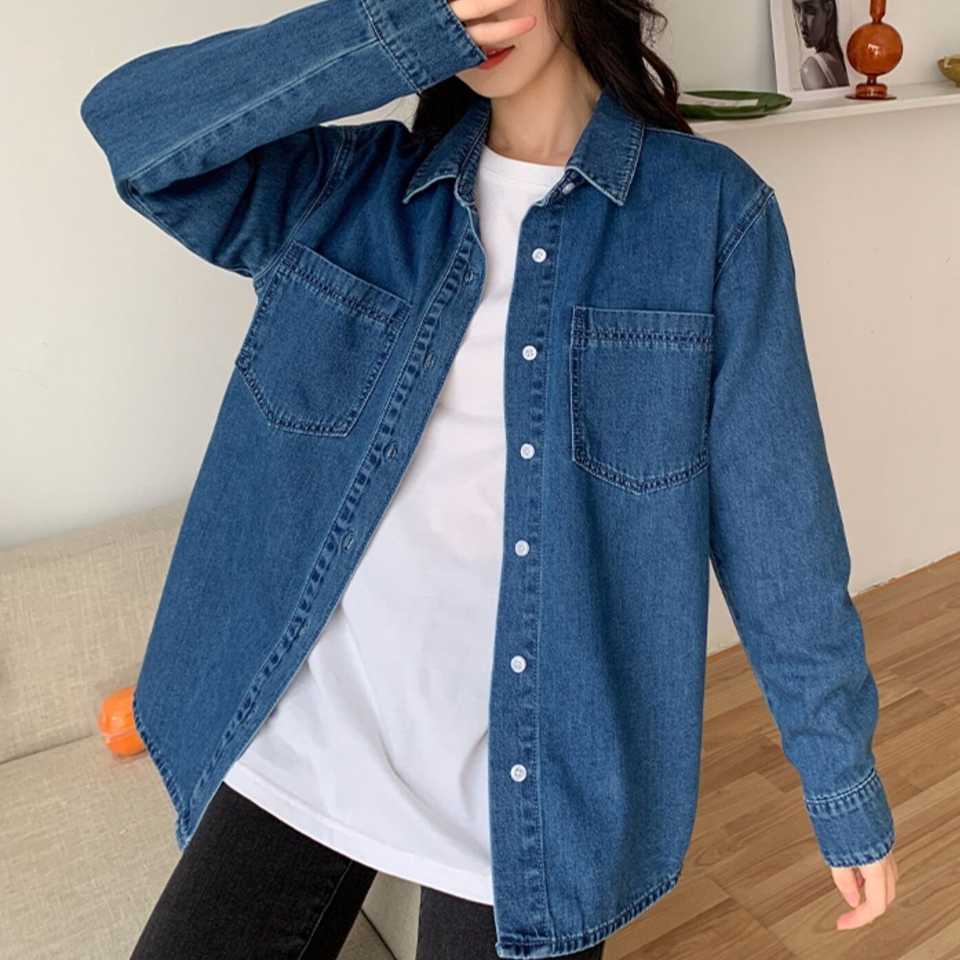 トップス デニム シャツ 薄手 長袖 ゆったり レディース きれいめ 上品 エレガント 大きめ S М L オシャレ お洒落 かわいい 大人可愛い レトロ 20代 30代 40代 50代 60代 ОL 通勤 仕事 オフィス シンプル カジュアル 着心地 春 秋 こなれ感 休日 お出かけ 買い物 公園 仕事 定番 王道 前開き ブルー 青 ボタン 体型カバー 着痩せ 細見え Iライン ストレート 通気性 柔らか 着心地 ラフ 新作 2022 アウター ジャケット