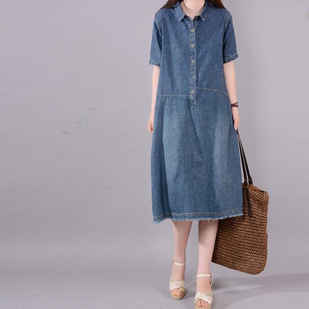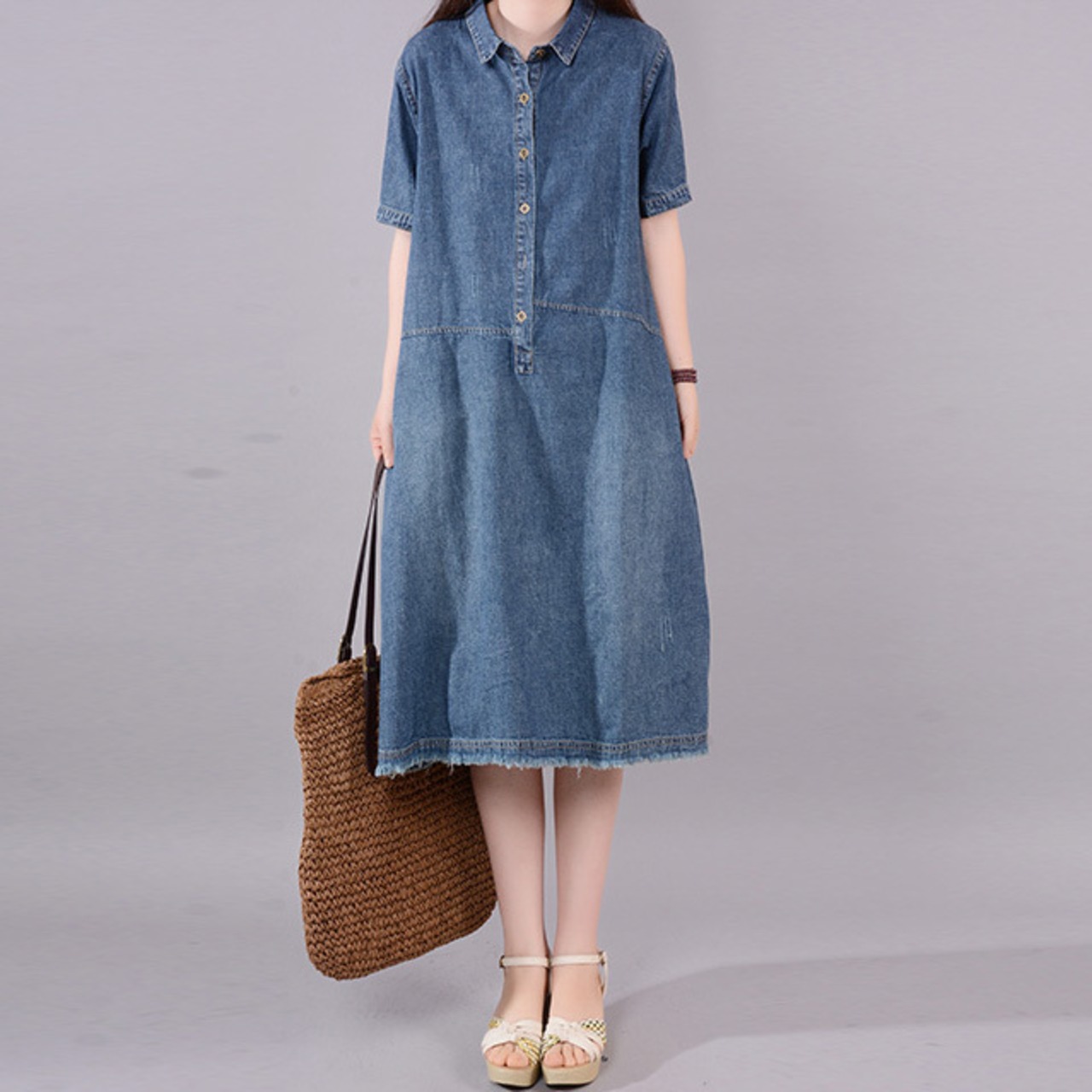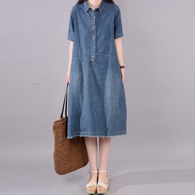 夏 サマードレス デニムドレス プルオーバー ミディスカート デニムワンピース ミディアム丈 袖あり 半袖 ラウンドネック 襟付き スリム Aライン レギュラー ポケット 前開き ミドルウエスト ボタン タイプA 綿 デニム かわいい 大人可愛い カジュアル 大人 お洒落 大人女子 スポーティー キュート 無地 夏 30代 40代 レディース 女性用 ママ オフィス ビジネス OL 通勤 お出かけ 休日 リゾート ガーデン 重ね着 コーデ 楽ちん インスタ映え M L XL ブルー