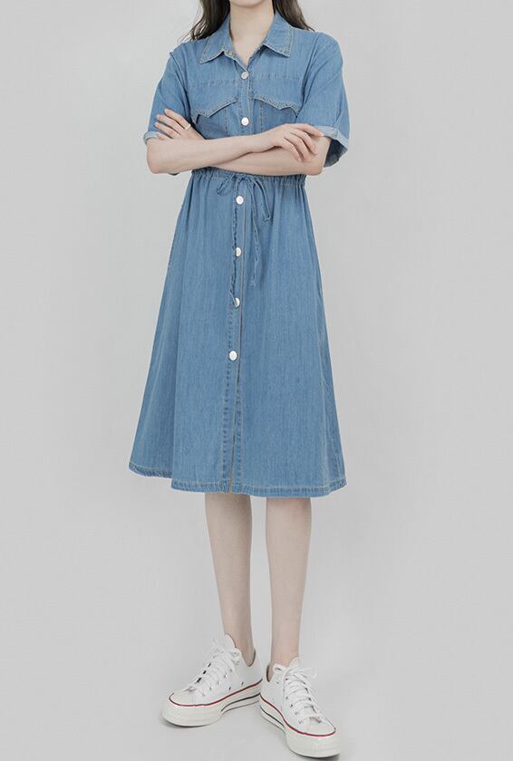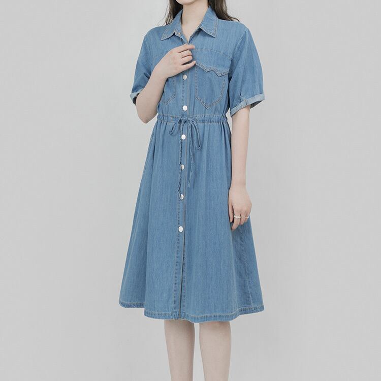 夏 カジュアル シャツスカート スカート ワンピース プルオーバー ロングスカート デニムワンピース 袖あり 半袖 Vネック 襟付き スリム Aライン レギュラー ドレープ ふわふわ ハイウエスト 前開き ボタン デニム 薄手 かわいい 大人可愛い シンプル カジュアル おしゃれ 大人女子 メンズライク キュート モダン 無地 夏 レディース 女性用 ママ 女の子 オフィス ビジネス OL 通勤 学生 通学 お出かけ お泊まり リゾート ホテル 着回し コーデ 楽ちん インスタ映え S M L ブルー