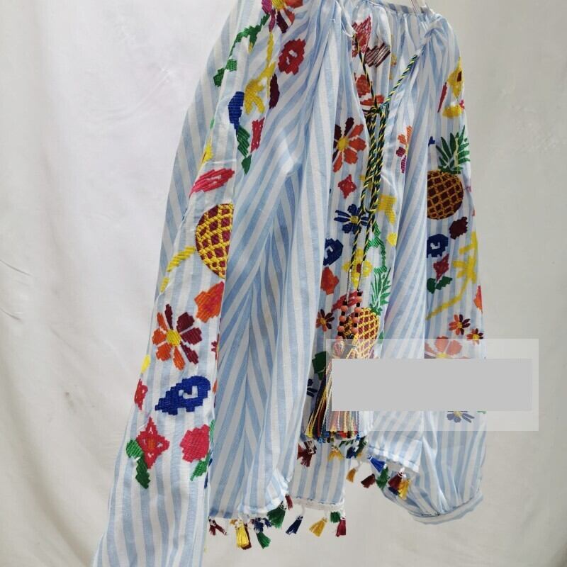 トップス ブラウス 白トップス 袖あり Vネック キーネック スキッパーネック タッセル ワイド 刺繍 麻 リネン かわいい 大人可愛い シンプル カジュアル おしゃれ お洒落 アジアン エスニック 大人女子 こなれ感 ラフ ラブリー キュート ガーリー ルーズ 個性的 主役級 存在感 抜け感 柄 花柄 フラワー ストライプ 春 秋 10代 20代 30代 レディース 女性用 デート お出かけ 公園デビュー 女子会 休日 イベント リゾート 旅行 着回し 普段使い 重ね着 体系カバー S M ホワイト系