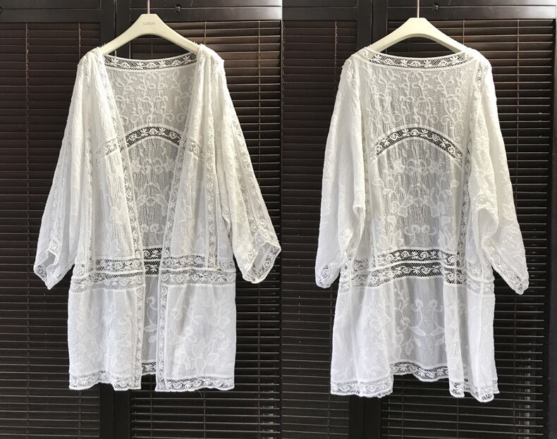 水着の上など、日焼け対策におすすめのレースカーディガン。