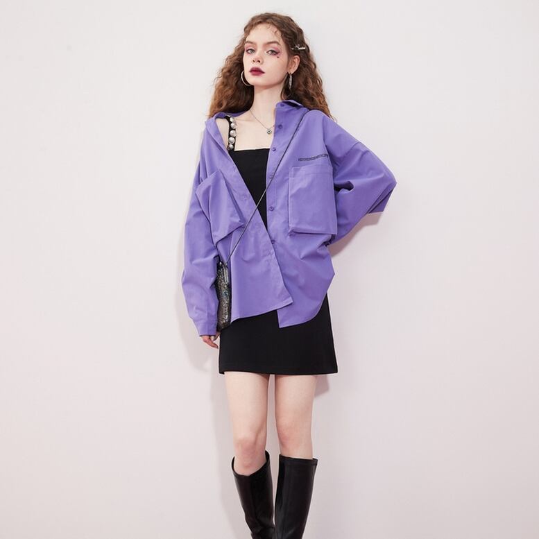 ビッグポケット付きシャツ トップス レディース シャツ ブラウス 襟付きシャツ 長袖 ドロップショルダー オーバーシャツ 羽織り ロングシャツ チュニック丈 茶色 紫 ブラウン パープル 大人可愛い きれいめ 上品 エレガント フォーマル ガーリー マニッシュ ルーズ キュート 春 夏 秋 冬 二次会 オフィス ビジネス OL 通勤 学生 通学 デート お出かけ パーティー イベント 女子会 休日 旅行 体型カバー モテ 普段使い 定番 トレンド オーバーサイズ ゆったり インスタ映え ニュアンスカラー