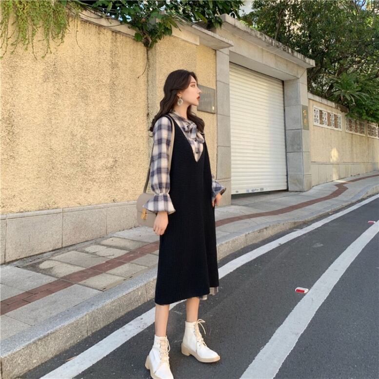 ワンピースセット セットアップ レディース ツーピース 2点セット シャツワンピースセット ボウタイシャツワンピース&ロングニットジレ セット チェックワンピース ニットベスト ロング丈 黒 ブラック チェック柄 大人可愛い きれいめ 上品 エレガント フォーマル ガーリー マニッシュ ルーズ キュート 春 夏 秋 冬 二次会 お呼ばれ オフィス ビジネス OL 通勤 学生 通学 デート お出かけ パーティー イベント 女子会 休日 体型カバー モテ 普段使い 定番 ゆったり インスタ映え