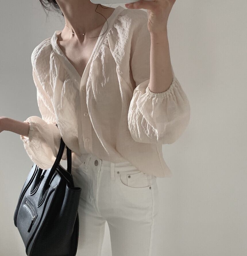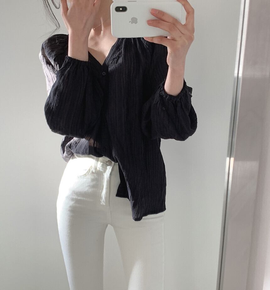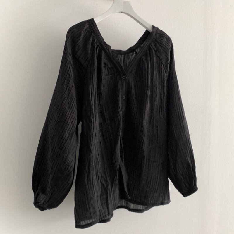 トップス レディース カーディガン ブラウス 袖あり 長袖 Vネック シャーリング 透け感 前開き ボタン 大人可愛い シンプル カジュアル 大人 おしゃれ お洒落 レトロ 大人女子 こなれ感 ラフ 抜け感 フリーサイズ ワンサイズ アイボリー 黒 ブラック 無地 しじれ 春 秋 10代 20代 30代 40代 50代 ママ 学生 通学 公園デビュー お泊り 休日 リラックス 楽ちん 体型カバー 着回し 普段使い 重ね着 韓国 オルチャン お揃い 双子