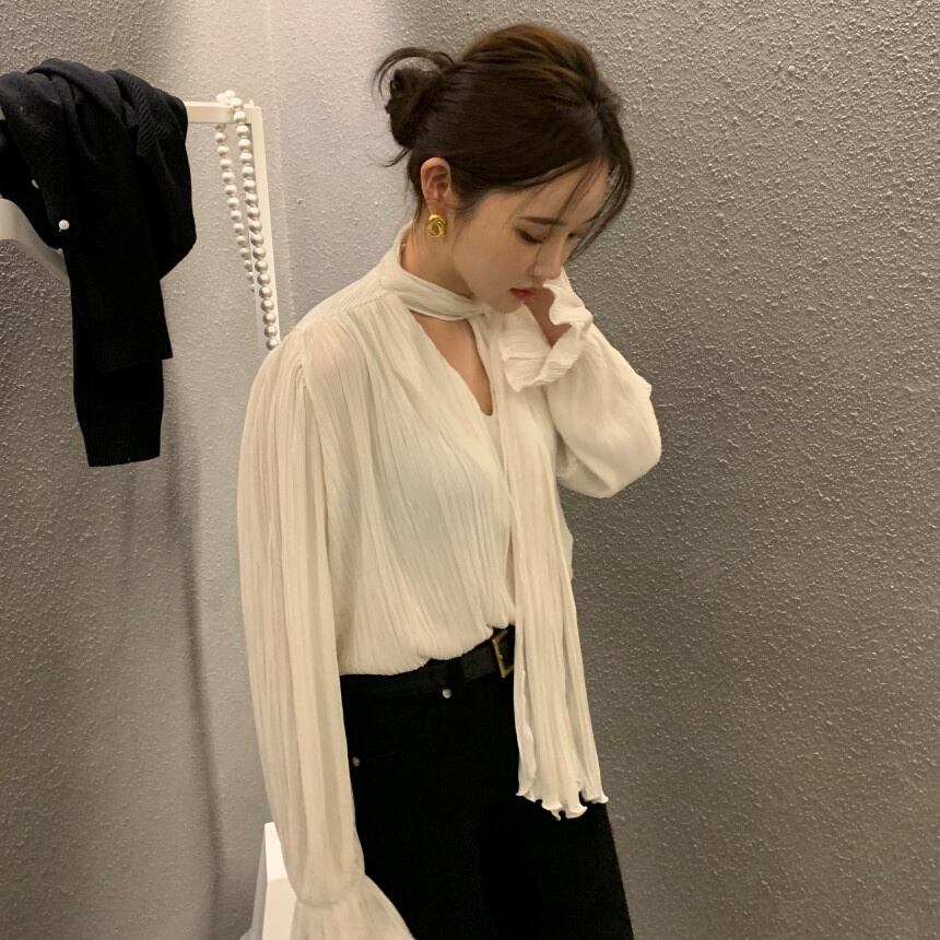 トップス ブラウス スカーフ付き 2点セット シフォン シャツ Vネック 長袖 ゆったり レディース きれいめ 上品 エレガント お洒落 オシャレ フェミニン ガーリー フェアリー かわいい 大人可愛い 20代 30代 40代 50代 ОL 通勤 シンプル カジュアル 春 秋 こなれ感 休日 お出かけ 買い物 公園 女子会 韓国 トレンド 流行 Iライン ストレート 着心地 無地 ベージュ ブラック 黒 ブルー 映え SNS とろみ ギャザー ふんわり ヴィンテージ 透け感 薄手 抜け感 タイ リボン