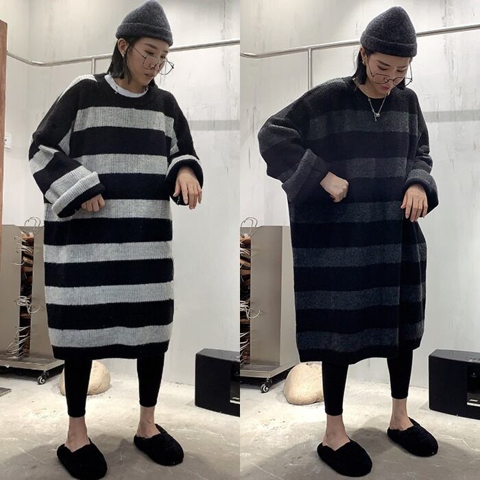 ワンピース レディース ニットワンピ ミディワンピ ワンサイズ フリーサイズ ダークグレー ライトグレー 灰色 ボーダー しましま 大人カラー 秋カラー くすみカラー 秋 冬 ニット 長袖 ドロップショルダー クルーネック ラウンドネック ロング丈 ミドル丈 ミディ丈 膝丈 ストレート ゆったり ゆる ルーズ 着やせ 体型カバー ママ フェミニン ナチュラル きれいめ きれカジ カジュアル ガーリー キュート 大人 大人可愛い 存在感 主役級 こなれ感 ぬけ感 お出かけ デート 韓国 オルチャン レトロ