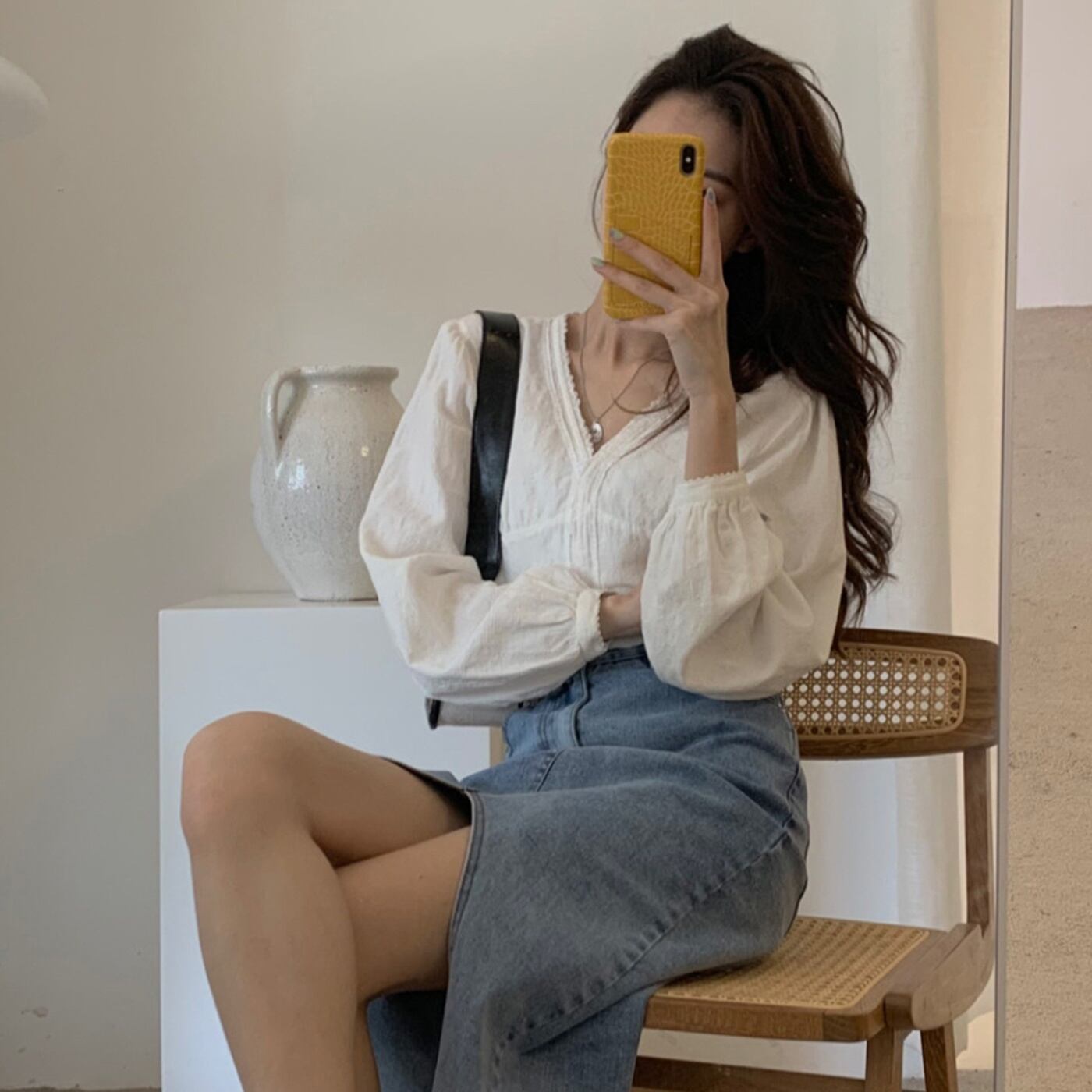 トップス ブラウス シャツ カットソー レース 長袖 レディース きれいめ 上品 清楚 清潔感 大きめ お洒落 オシャレ フェミニン ガーリー フェアリー かわいい 大人可愛い 20代 30代 40代 50代 ОL 通勤 シンプル カジュアル 春 夏 こなれ感 休日 お出かけ 買い物 公園 女子会 韓国 トレンド 流行 ホワイト 白 体型カバー 着痩せ 映え SNS 写真 綿 コットン 薄手 ラフ Vネック デコルテ 鎖骨 華奢 ボリューム 袖 小さいサイズ XS S М L ランタンスリーブ