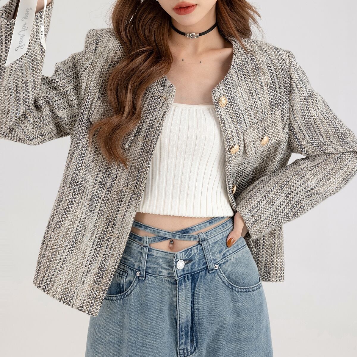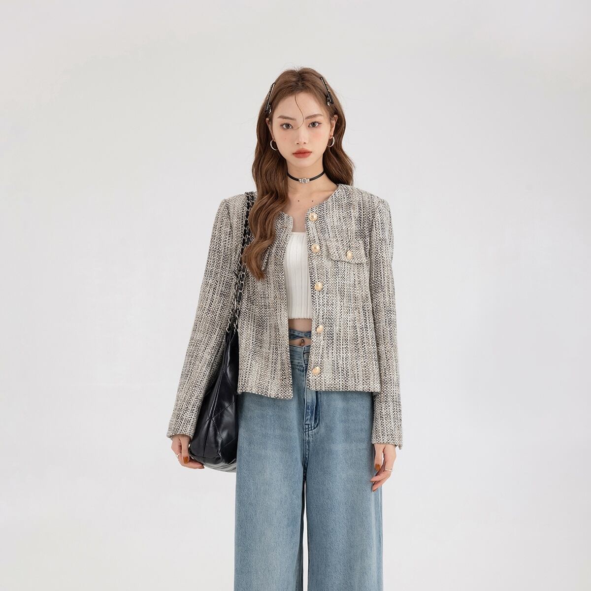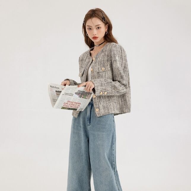 アウター ツイード ジャケット レディース 長袖 お洒落 オシャレ かわいい 大人可愛い きれいめ 上品 エレガント 防寒 暖かい あったか 秋 冬 春 ノーカラー 前開き ボタン シック モダン 20代 30代 40代 50代 小さいサイズ XS S М L シンプル カジュアル ラフ ゆったり 大きめ 体型カバー 着痩せ Iライン ストレート 通勤 通学 休日 お出かけ ショッピング 女子会 デート モテ 定番 高級感 パール デザイン ボタン こなれ感 韓国 トレンド 流行