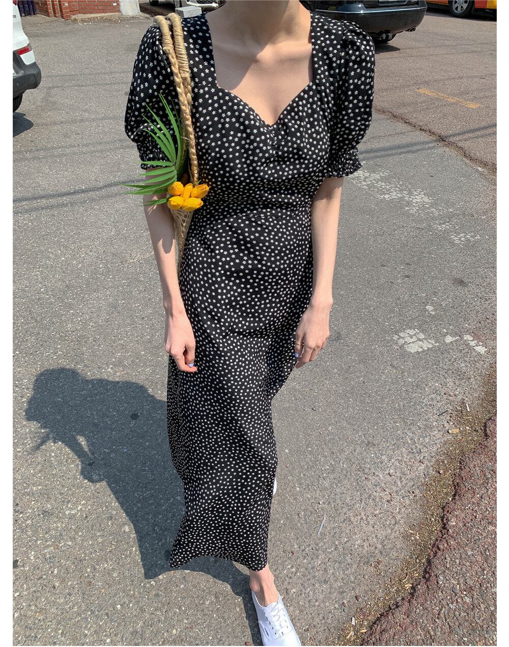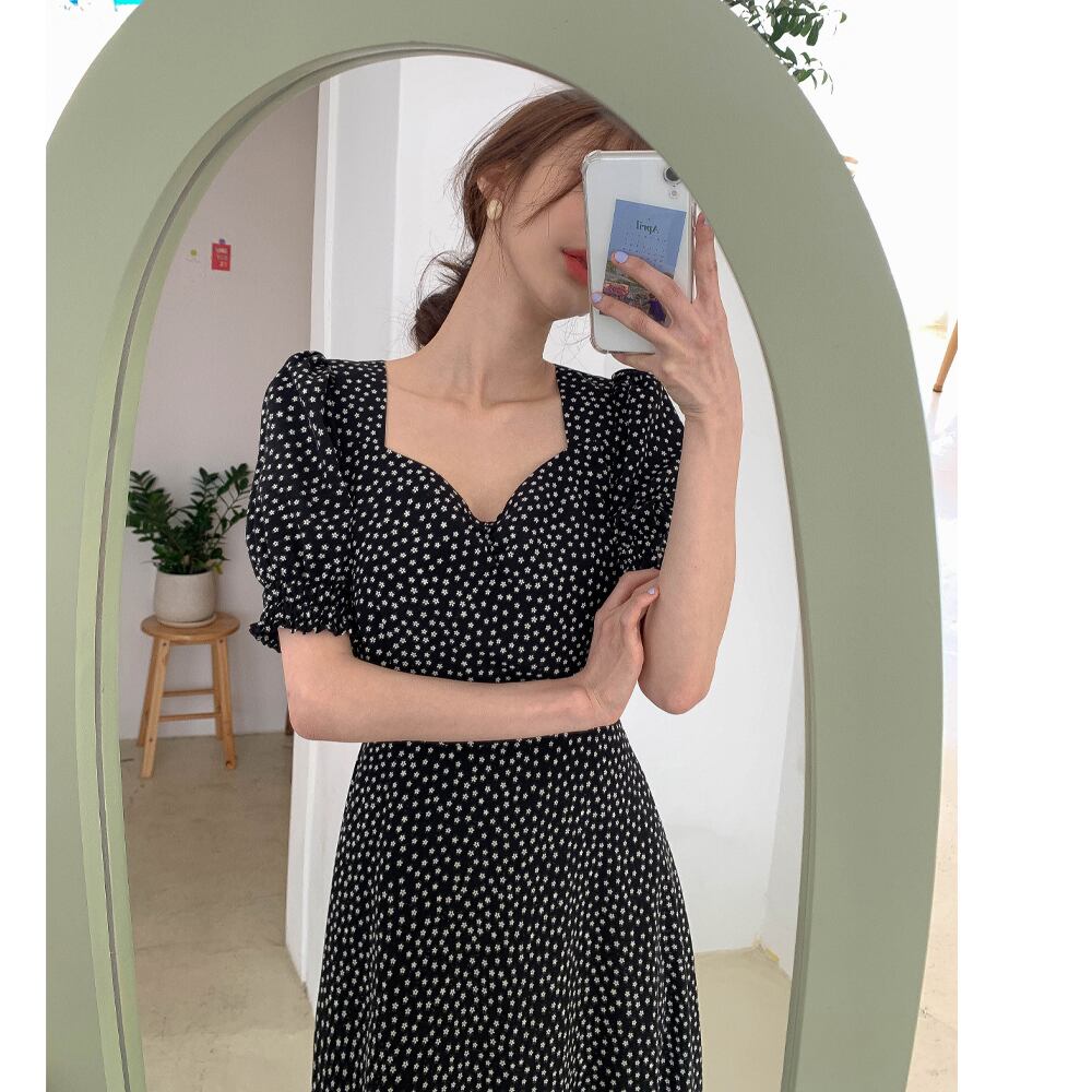 ワンピース レディース 花柄ワンピ ロングワンピ S M L 大人カラー モノトーン 花柄 フラワー フローラル 春 夏 半袖 パフスリーブ ロング丈 ロング アンクル丈 マキシ丈 膝下 フレア Aライン ハイウエスト 脚長 スタイルアップ 着やせ 体型カバー ママ フェミニン ナチュラル きれいめ きれカジ カジュアル ガーリー キュート モテ 大人 大人可愛い 存在感 主役級 こなれ感 ぬけ感 休日 お出かけ デート 韓国 オルチャン 学生 通学 お呼ばれ レトロ デイジー さわやか 定番 万能