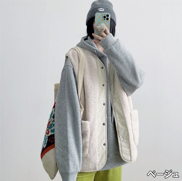 ベスト レディース トップス フリースベスト ワンサイズ フリーサイズ ブラック 黒 ベージュ 無地 リバーシブル キルティング ボア 大人カラー くすみカラー 秋カラー フロントボタン 前開き 袖なし 秋 冬 レイヤード 重ね着 ミドル丈 ロング丈 ストレート ルーズ ゆったり ゆる 防寒 あったか フリース もこもこ ふわふわ カジュアル ナチュラル きれいめ きれカジ ストカジ ストリート 大人 大人可愛い お出かけ 休日 アウトドア 着回し 定番 万能 存在感 主役級 学生 通学 韓国 オルチャン