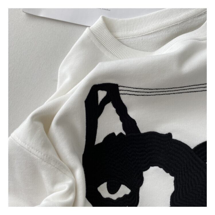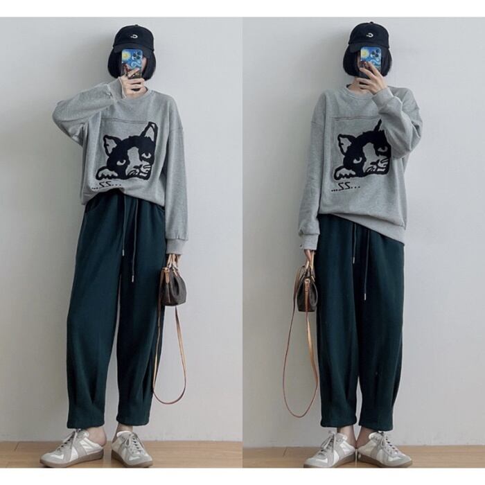 スウェット レディース トップス トレーナー プルオーバー ワンサイズ フリーサイズ ブラック 黒 グレー 灰色 ホワイト 白 大人カラー モノトーン ねこ 猫 ネコ 刺繍 秋 冬 クルーネック ラウンドネック 長袖 ルーズ ゆったり ゆる オーバーサイズ ストカジ ストリート ママ フェミニン カジュアル ナチュラル きれカジ 大人 大人可愛い こなれ感 ぬけ感 存在感 主役級 個性 ユニーク 学生 通学 休日 お出かけ 着回し 定番 万能 シンプル 韓国 オルチャン ルームウェア 部屋着 リラックス