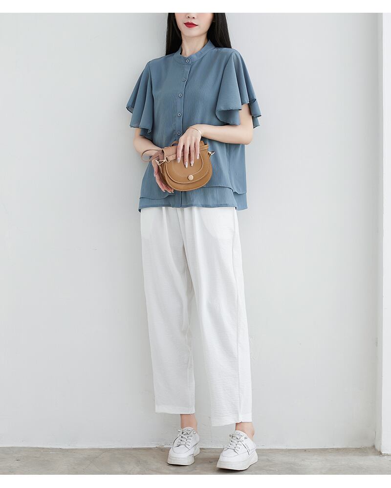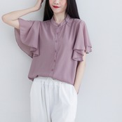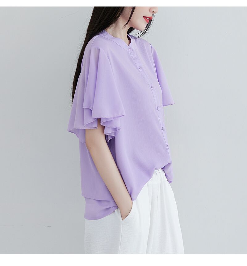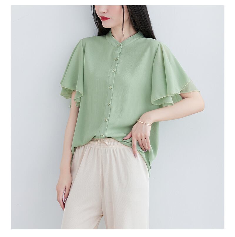 トップス ブラウス 13色 シフォン シャツ カラバリ ゆったり レディース 半袖 きれいめ 上品 エレガント お洒落 オシャレ フェミニン ガーリー かわいい 大人可愛い 20代 30代 40代 50代 ОL 通勤 仕事 オフィス シンプル カジュアル 春 秋 夏 こなれ感 休日 お出かけ 女子会 韓国 トレンド 流行 柔らか 着心地 とろみ 薄手 抜け感 知的 美人 清潔感 清楚 着回し М L XL 華奢 体型カバー 着痩せ 無地 グリーン ホワイト ブラック ピンク ブラウン フレア 袖 ふんわり