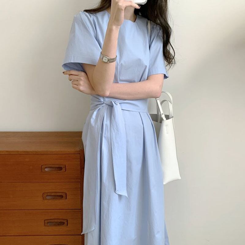 ワンピース レディース フレアワンピース ロング丈 袖あり 半袖 ラウンドネック フレア Aライン ウエストリボン かわいい 大人可愛い きれいめ シンプル 大人 上品 おしゃれ お洒落 大人女子 こなれ感 爽やか 清楚 キュート エレガント 存在感 ワンサイズ ライトイエロー 黄色 ブルー 水色 青 ブラック 黒 無地 夏 20代 30代 40代 50代 ママ デート お出かけ お呼ばれ 女子会 休日 旅行 リゾート イベント プレゼント ギフト 定番 楽ちん お揃い 双子 韓国 オルチャン