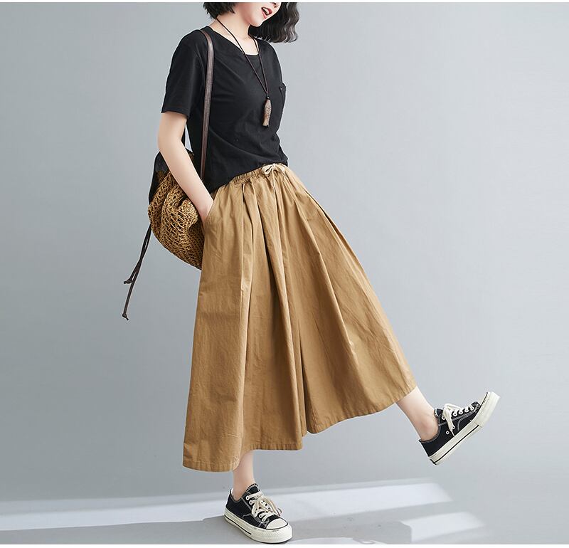 ボトムス ワイドパンツ 3色 レディース Aライン 膝下 ミモレ丈 リネン 綿 麻 シンプル カジュアル ラフ こなれ感 かわいい 大人可愛い お洒落 オシャレ きれいめ エレガント 着回し くすみカラー ブラウン 茶色 グリーン 黒 ブラック 無地 春 夏 秋 通気性 自然派 リラックス ロング丈 20代 30代 40代 50代 60代 体型カバー 着痩せ 細見え ポケット 休日 公園 お出かけ 買い物 レトロ ヴィンテージ アンティーク ギャザー ルーズ リボン 大きいサイズ М L XL 2XL