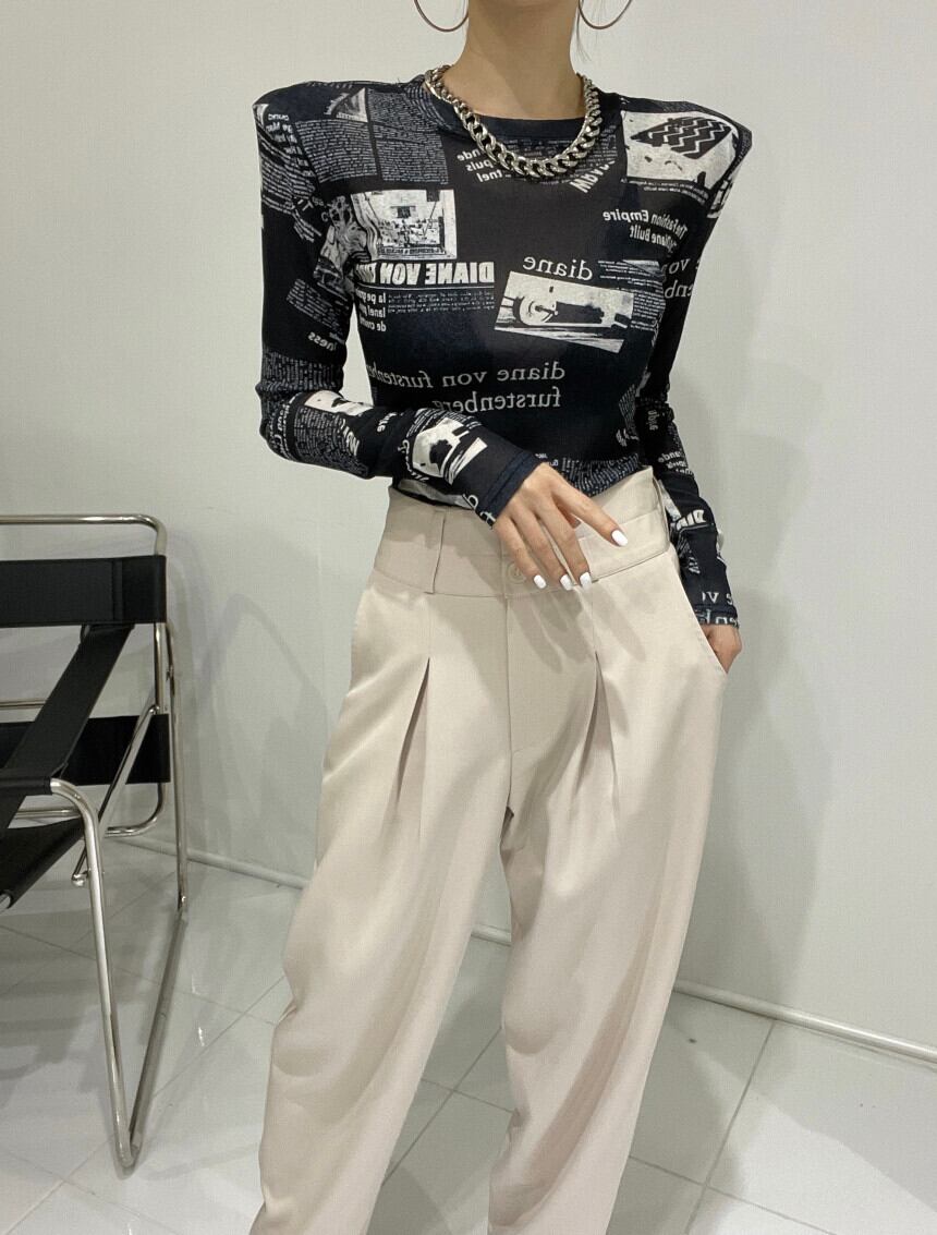 秋 肩パッド付 トップス Tシャツ 上着 ショート丈 袖あり 長袖 ラウンドネック 襟なし スリム 細身 透け感 伸縮性 薄手 異素材MIX かわいい 大人可愛い カジュアル 大人 お洒落 かっこいい レトロ 大人女子 メンズライク スポーティー 個性的 無地 秋 レディース 女性用 ママ 女の子 オフィス ビジネス OL 通勤 学生 通学 デート お泊まり 休日 パーティー イベント ホテル レストラン 普段使い コーデ インスタ映え ワンサイズ ホワイト ブラック