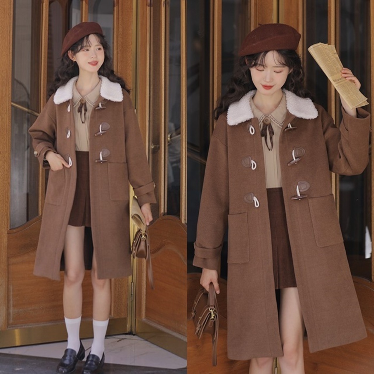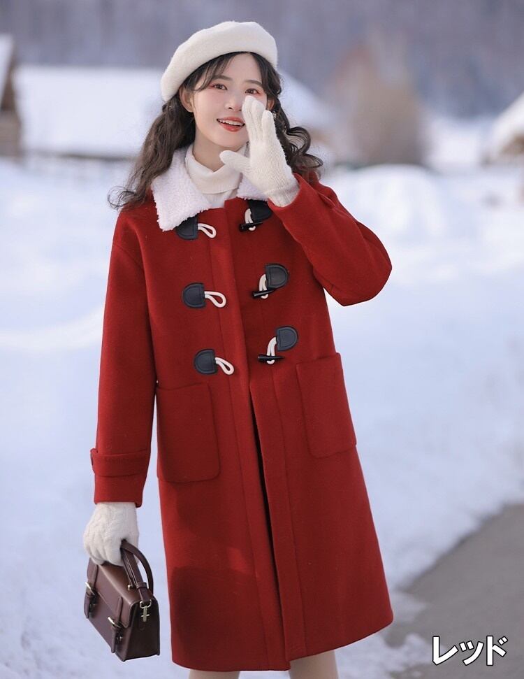 ロングコート レディース アウター ダッフルコート XS S M L アプリコット ブラウン 茶色 レッド 赤 大人カラー くすみカラー 無地 ボア ボア襟 ロング丈 ロング ミドル丈 ミディ丈 膝丈 冬 雪国 防寒 あったか ママ 体型カバー 着やせ ストレート フェミニン ナチュラル カジュアル きれいめ きれカジ モテ キュート ガーリー 定番 万能 着回し 王道 シンプル ベーシック ゆったり 休日 お出かけ デート 存在感 主役級 こなれ感 ぬけ感 通学 学生 韓国 オルチャン OL 通勤