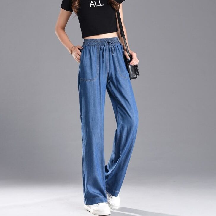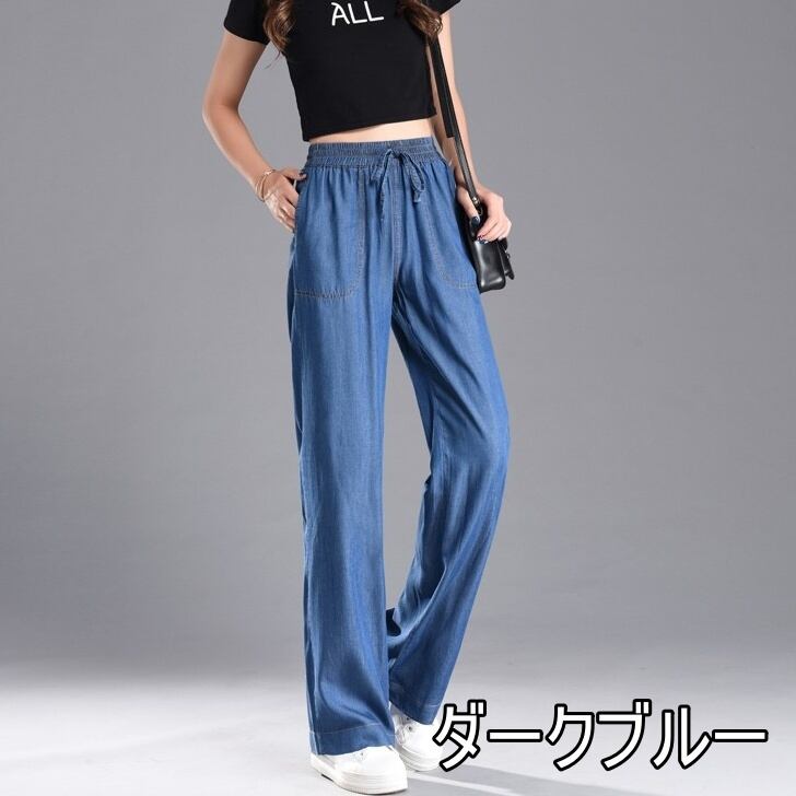ボトムス デニム パンツ ジーンズ ゆったり ワイド ウエストゴム とろみ レディース ハイウエスト シンプル カジュアル ラフ こなれ感 オシャレ お洒落 大人可愛い 大人女子 Iライン ストレート きれいめ 上品 エレガント 美脚 脚長 着回し クール ブリーチ 加工 色落ち オールシーズン 春 夏 秋 冬 20代 30代 40代 50代 かっこいい ポケット ブルー 青 韓国 トレンド 休日 お出かけ ショッピング S М L XL 2XL 大きいサイズ ズボン ロング丈 ジーパン 定番 王道