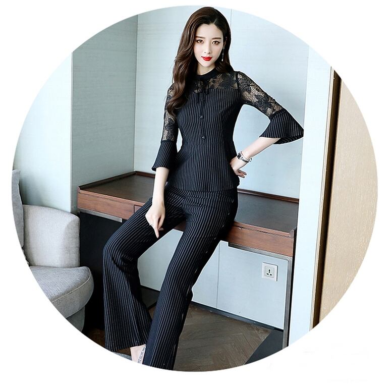 ストライプパンツドレス セットアップ レディース パンツセットアップ ストライプ レース ドッキング パンツスーツ 2点セット ツーピース 上下セット スーツ ペプラム レース切り替え トップス ロングパンツ フェミニン 黒 ブラック 大人可愛い きれいめ 上品 エレガント フォーマル ガーリー 春 夏 秋 冬 二次会 お呼ばれ オフィス ビジネス OL 通勤 学生 通学 デート お出かけ パーティー イベント 女子会 休日 体型カバー 脚長 モテ 普段使い 定番 トレンド ゆったり インスタ映え