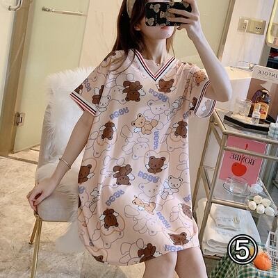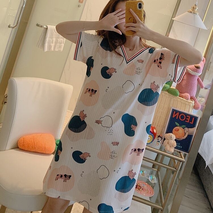 パジャマ 6種類 ワンピース プリント ネグリジェ 半袖 レディース Vネック 総柄 ゆったり 大きめ 大きいサイズ М L XL 2XL かわいい 大人可愛い お洒落 オシャレ 韓国 トレンド 流行 春 夏 10代 20代 30代 40代 ルームウェア 部屋着 寝巻 旅行 お泊まり 映え SNS お揃い プレゼント ギフト 薄手 柔らか リラックス メルヘン ガーリー フェミニン 個性的 個性派 花柄 フラワー アニマル 動物 フルーツ クマ テディベア エレガント 上品 抜け感 とろみ パステルカラー