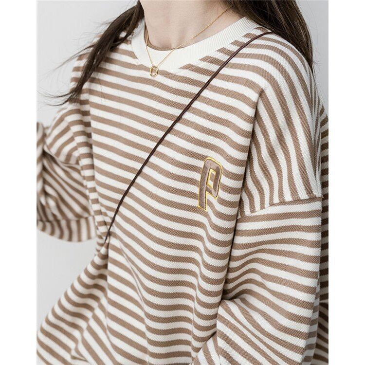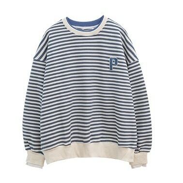 トップス トレーナー スウェット ボーダー くすみカラー 長袖 レディース ドロップショルダー ゆったり 大きめ ワイド シンプル カジュアル ラフ ストライプ 刺繍 ホワイト 白 黒 ベージュ ブルー 青 ルーズ ゆる リラックス 部屋着 ルームウェア 萌え袖 休日 お出かけ 公園 体型カバー 着痩せ 細見え 10代 20代 30代 40代 春 秋 冬 お洒落 オシャレ かわいい 大人可愛い こなれ感 双子 色違い 映え SNS お揃い 大きめ М L XL ヴィンテージ レトロ アンティーク