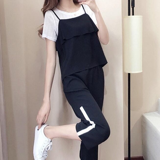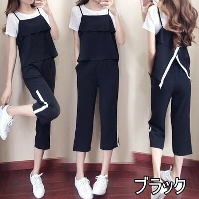 セットアップ 3点セット 上下セット 3色 Tシャツ パンツ ベスト ゆったり レディース 2点セット ラウンドネック 半袖 ウエストゴム キャミソール フリル お洒落 オシャレ かわいい 大人可愛い ルーズ こなれ感 シンプル カジュアル ラフ 体型カバー 着痩せ クール 春 夏 お得 お買い得 シャツ カットソー ズボン 膝下 着回し 普段着 普段使い ライン スポーティー スリット バックデザイン 個性的 個性派 かわいい 大人可愛い ショート丈 脚長 美脚 スタイルアップ