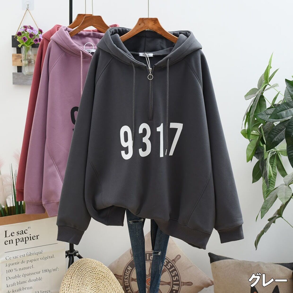 パーカー レディース トップス フード付き フーディー プルオーバー ハーフジップ 裏起毛 ワンサイズ フリーサイズ ブラック 黒 ブルー 青 パープル 紫 グレー 灰色 クラレット 赤 大人カラー くすみカラー 秋カラー ロゴ プリント 英字 長袖 ストレート ミドル丈 ゆったり ゆる ルーズ ボーイッシュ メンズライク カジュアル ストリート ストカジ きれカジ 大人可愛い リラックス シンプル ベーシック 大人 大人可愛い 定番 万能 着回し デイリー お出かけ 休日 学生 通学 韓国 オルチャン