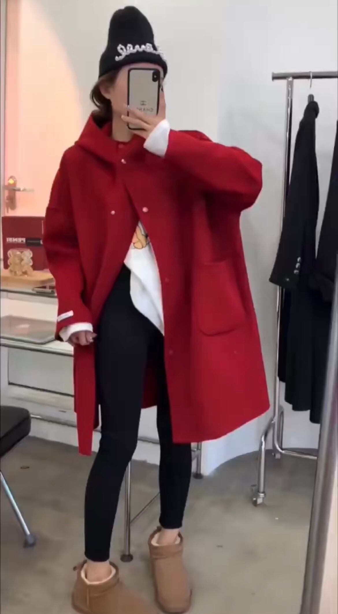アウター コート 上着 膝上 袖あり 長袖 ドロップショルダー ワイド フード付き ポケット 前開き ウール かわいい 大人可愛い きれいめ シンプル カジュアル おしゃれ お洒落 大人女子 こなれ感 ラフ ルーズ 主役級 存在感 抜け感 無地 秋 冬 10代 20代 30代 40代 50代 60代 レディース 女性用 デート お出かけ 公園デビュー 女子会 休日 旅行 着回し 普段使い 重ね着 韓国系 オルチャン ファッション スタイル 体系カバー 定番 S M ベージュ ピンク レッド ブラック