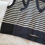 ベスト レディース トップス ニットベスト ニットトップス ワンサイズ フリーサイズ ブラック 黒 ブルー 青 大人カラー モノトーン くすみカラー 秋カラー ボーダー しましま Vネック 袖なし 秋 冬 レイヤード 重ね着 ミドル丈 ショート丈 ストレート ルーズ ゆったり ゆる カジュアル ナチュラル きれいめ きれカジ ストカジ マリン レトロ 大人 大人可愛い お出かけ 休日 着回し 定番 万能 王道 シンプル ベーシック 存在感 主役級 学生 通学 韓国 オルチャン 体型カバー 着やせ ママ