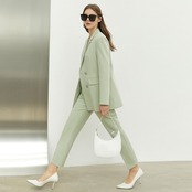 パンツスーツ セットアップ レディース 小さいサイズ ツーピース 2点セット 上下セット スーツ マニッシュセットアップスーツ オフィスカジュアル セミワイド テーラードジャケット センタープレス テーパードパンツ かっこいい 緑 黒 グリーン ブラック 大人可愛い きれいめ 上品 エレガント フォーマル ルーズ クール 春 夏 秋 冬 二次会 お呼ばれ ビジネス オフィス OL 通勤 学生 通学 お出かけ パーティー イベント 体型カバー トレンド ゆったり インスタ映え ニュアンスカラー