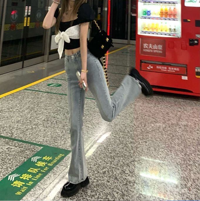ボトムス ジーンズ デニム Gパン ハイウエスト フレアジーンズ センタープレス風 ブルーデニム 大人可愛い シンプル カジュアル おしゃれ お洒落 かっこいい レトロ 大人女子 こなれ感 ラフ メンズライク マニッシュ ボーイッシュ 個性的 クール 存在感 抜け感 S M L 無地 春 夏 秋 冬 オールシーズン シーズンレス 10代 20代 30代 40代 50代 ママ 学生 通学 お出かけ 女子会 アウトドア 普段使い 定番 韓国 オルチャン スタイル コーデ ファッション 流行
