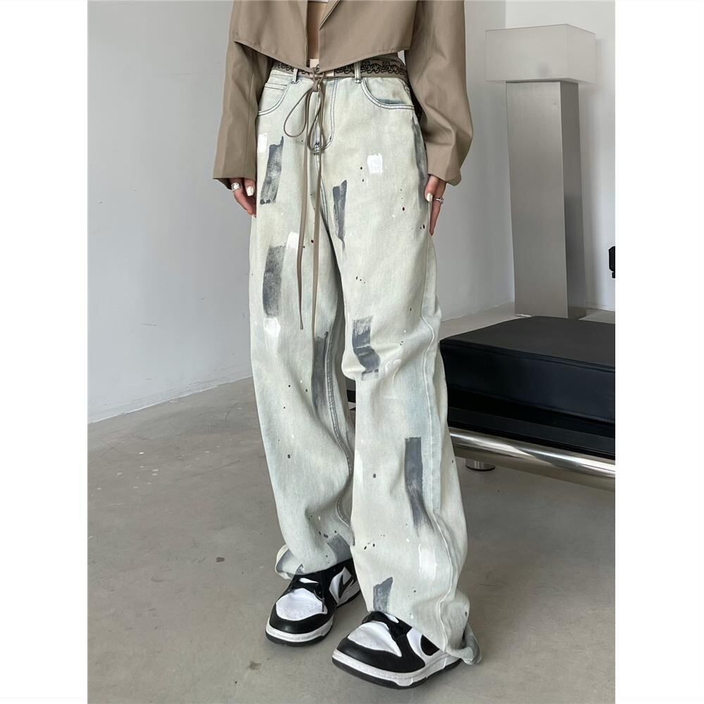 ボトムス レディース ジーンズ デニム Gパン ストレート ペイント ユーズド風 レトロブルー カジュアル おしゃれ お洒落 かっこいい こなれ感 ラフ メンズライク ボーイッシュ ルーズ 個性的 クール モード系 主役級 存在感 抜け感 S M L XL ゆる ゆったり 春 夏 秋 冬 オールシーズン シーズンレス 10代 20代 30代 40代 ママ 学生 通学 お出かけ 休日 アウトドア イベント ダメージ 体型カバー プレゼント ギフト 普段使い お揃い 双子 韓国 オルチャン