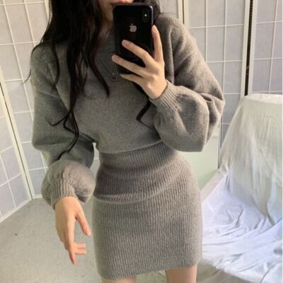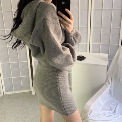 ワンピース ニット フード付き ショート丈 ミニ丈 タイト スリム 細身 レディース お洒落 オシャレ かわいい 大人可愛い セクシー シンプル カジュアル ボリューム 袖 ドロップショルダー 無地 黒 ブラック グレー 灰色 膝上 20代 30代 40代 春 秋 冬 韓国 トレンド 流行 シンプル カジュアル ラフ こなれ感 ルーズ 個性的 個性派 デート モテ 女子会 休日 ショッピング お出かけ 映え SNS 楽ちん シック モード とろみ 大人女子 体型カバー 着痩せ 細見え 華奢