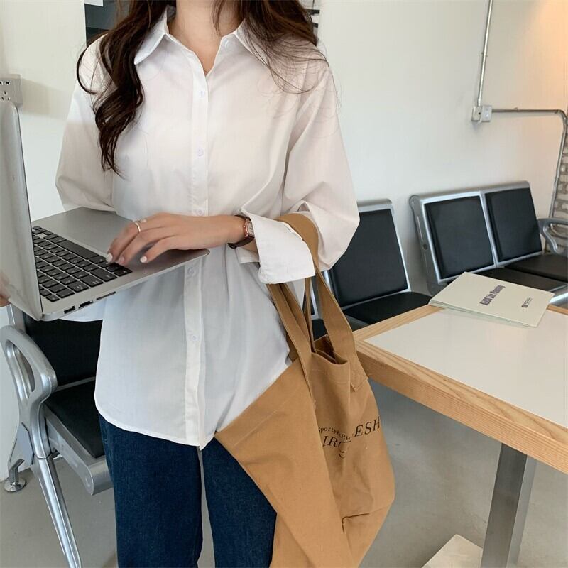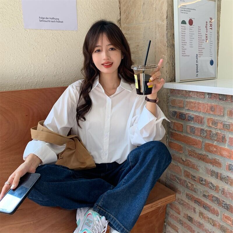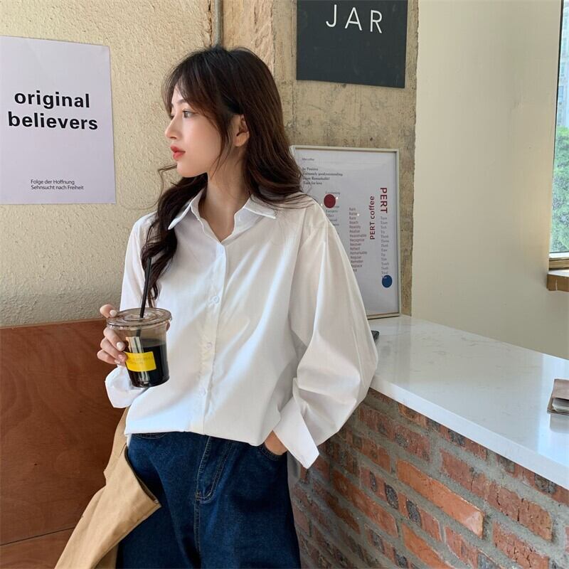 シャツ レディース トップス ブラウス ワンサイズ フリーサイズ ホワイト 白 無地 春 夏 秋 オールシーズン シーズンレス 長袖 フロントボタン 前開き ショート丈 ミドル丈 ストレート ルーズ ゆったり ゆる ママ フェミニン ナチュラル カジュアル きれいめ きれカジ 大人 大人可愛い こなれ感 ぬけ感 休日 お出かけ デート 定番 万能 着回し 王道 シンプル ベーシック 通学 学生 韓国 オルチャン ボーイッシュ マニッシュ メンズライク クール ストカジ ラフ きちんと感 さわやか 清潔感