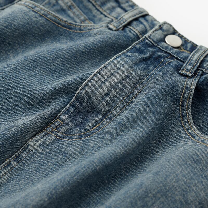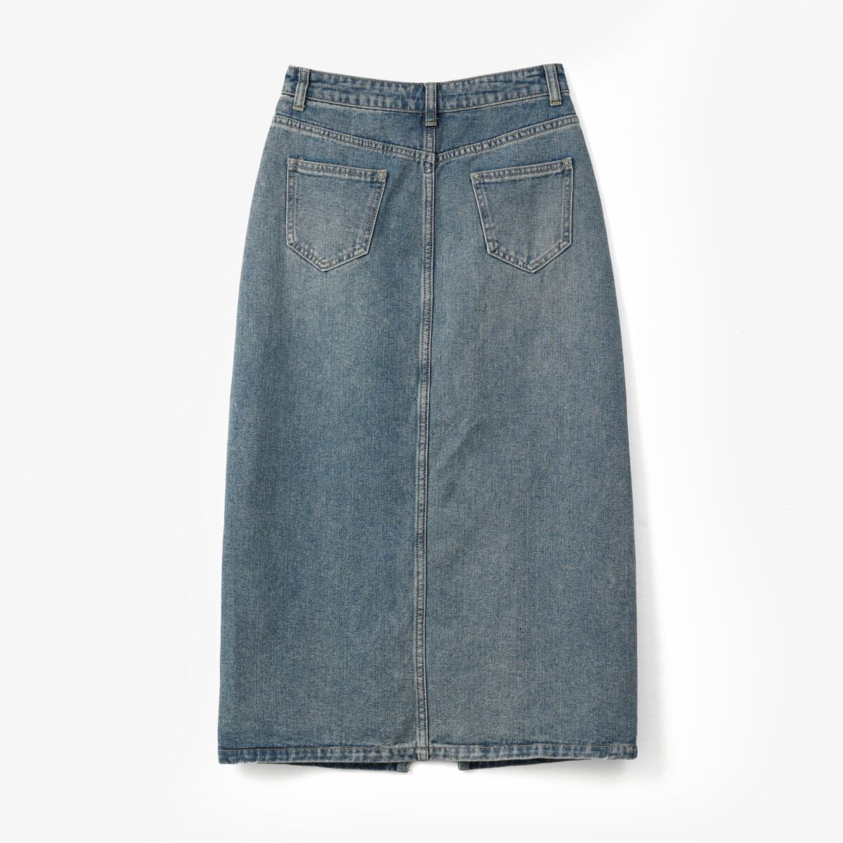 エレガントにも着こなせるIラインシルエットのデニムスカート。