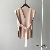 トップス ベスト カットソー 薄手 5色リボン ベルト レディース Vネック ショート丈 ノースリーブ オシャレ お洒落 きれいめ 上品 エレガント かわいい 大人可愛い ガーリー 10代 20代 30代 40代 50代 着回し 重ね着 シンプル カジュアル ラフ ジレ チョッキ ベージュ ブラウン 茶色 グレー 灰色 ブラック 黒 無地 小顔 華奢 ワイド 細見え ゆったり 大きめ 春 秋 冬 抜け感 こなれ感 ショッピング レトロ アンティーク ヴィンテージ スタイルアップ くびれ サイド スリット