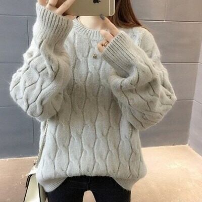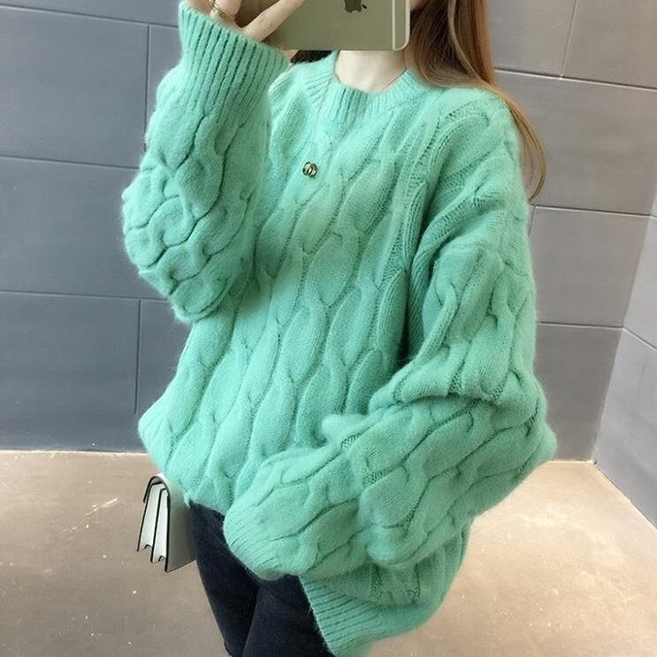 秋冬 ニット セーター トップス セーター 上着 ショート丈 袖あり 長袖 ラウンドネック 襟付き ストレート レギュラー ヘッジング ルーズ 編み込み 伸縮性 ルーズウエスト 厚手 普通生地(秋冬用) 大人可愛い カジュアル お洒落 大人女子 ラブリー ルーズ 無地 秋 冬 レディース 女性用 ママ 女の子 OL 学生 お出かけ お泊まり イベント リゾート 重ね着 コーデ 暖かい インスタ映え M L XL 2XL ブルー グリーン カーキ オレンジ ライトブルー クリーミーホワイト ライトグレー