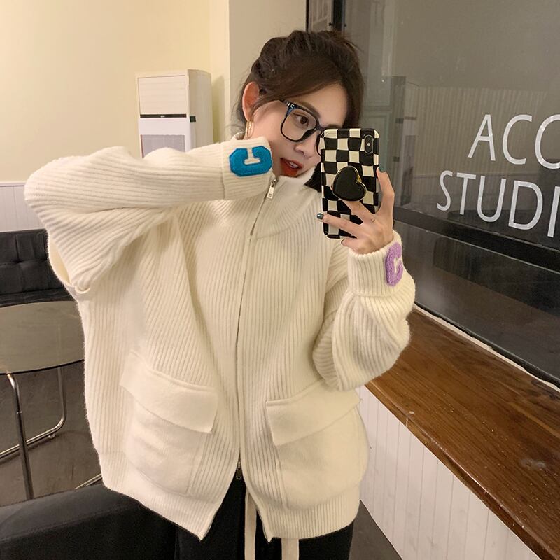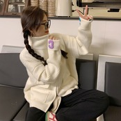 トップス ニット ジップアップ トレーナー オーバーサイズ ハイネック レディース 刺繍 ワッペン オシャレ お洒落 かわいい 大人可愛い ガーリー 10代 20代 30代 40代 着回し 重ね着 シンプル カジュアル ラフ ベージュ ホワイト 白 ピンク 華奢 細見え ゆったり 大きめ 春 秋 冬 抜け感 こなれ感 ショッピング レトロ アンティーク ヴィンテージ 柔らか 着心地 М L XL 2XL 3XL プラスサイズ 大きいサイズ あったか 暖かい ポケット ルーズ アウター ブルゾン