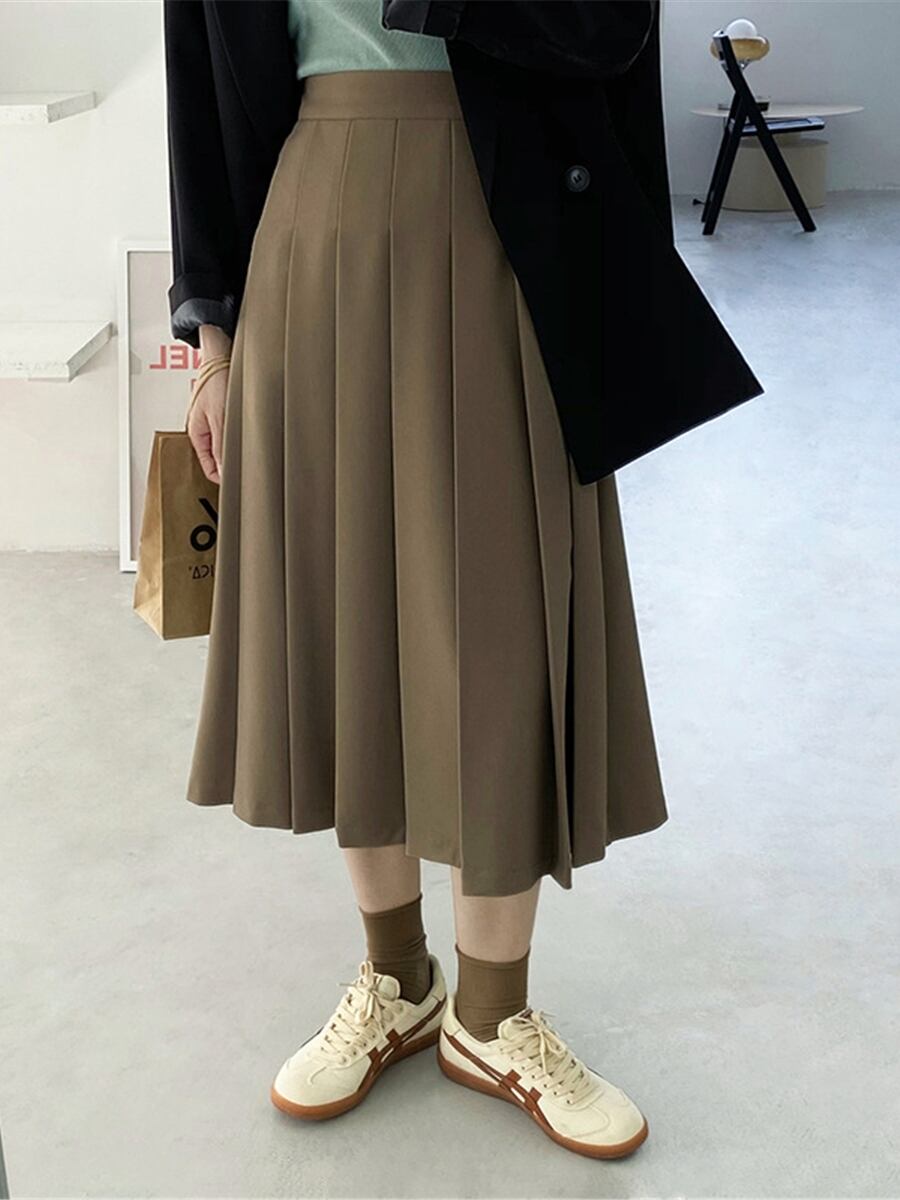 スカート レディース プリーツスカート ミモレ丈 ロング 大人可愛い きれいめ シンプル 大人 上品 おしゃれ お洒落 大人女子 クール エレガント 存在感 抜け感 M L 黒 ブラック カーキ 無地 春 秋 冬 10代 20代 30代 40代 50代 ママ オフィス ビジネス OL 通勤 学生 通学 デート お出かけ 女子会 休日 イベント 旅行 定番 プレゼント ギフト 着回し 普段使い お揃い 双子 韓国 オルチャン