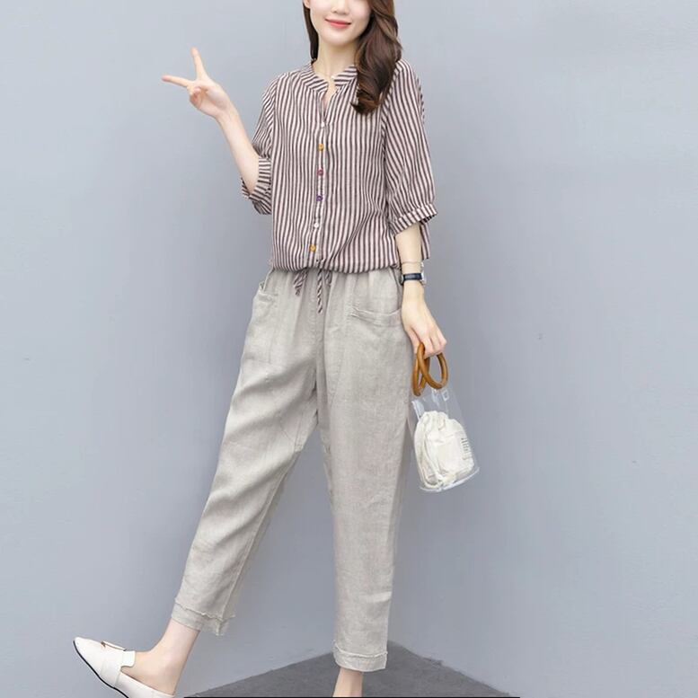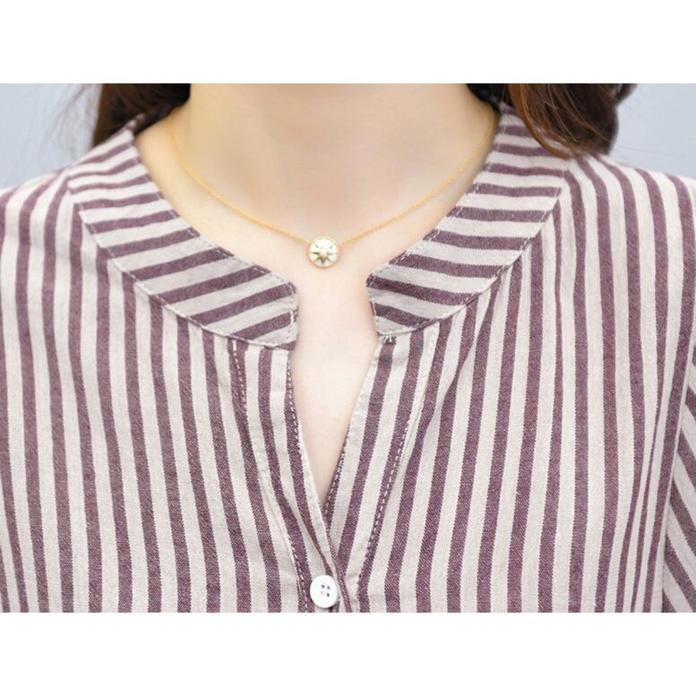 ストライプスキッパー7分袖シャツ トップス レディース シャツ ストライプ柄 ブラウス スキッパー 7分袖 コットンシャツ リネンシャツ ナチュラル 茶色 ココアブラウン 大人可愛い きれいめ 上品 エレガント フォーマル ガーリー マニッシュ ルーズ キュート レトロ 春 夏 秋 冬 二次会 オフィス OL 通勤 学生 通学 デート お出かけ パーティー イベント 女子会 休日 旅行 アウトドア 体型カバー 普段使い 定番 トレンド ゆったり インスタ映え くすみカラー アースカラー ニュアンスカラー