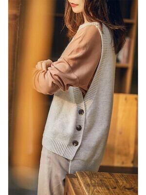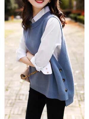 トップス ベスト ニット 3色 レディース ラウンドネック サイドスリット ボタン ノースリーブ オシャレ お洒落 エレガント かわいい 大人可愛い ガーリー 20代 30代 40代 50代 着回し 重ね着 シンプル カジュアル ラフ ジレ チョッキ ベージュ ブルー 青 ブラウン 茶色 くすみカラー 華奢 細見え ゆったり 大きめ 春 秋 冬 抜け感 こなれ感 ショッピング レトロ アンティーク ヴィンテージ 柔らか 着心地 体型カバー 着痩せ ルーズ ゆる 薄手 セーター 休日 お出かけ 女子会