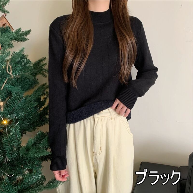 トップス ニット 裏起毛 4色 ハイネック ニットソー カットソー 長袖 レディース タイト スリム 細身 シンプル カジュアル ラフ 無地 ホワイト 白 黒 ブラック ベージュ ブラウン 茶色 くすみカラー 休日 お出かけ ショッピング 公園 体型カバー 着痩せ 細見え 20代 30代 40代 50代 60代 春 秋 冬 お洒落 オシャレ かわいい 大人可愛い こなれ感 大きめ 伸縮性 防寒 あったか 暖かい 着心地 柔らか 着心地 着回し セーター ボア ファー もふもふ ふわふわ