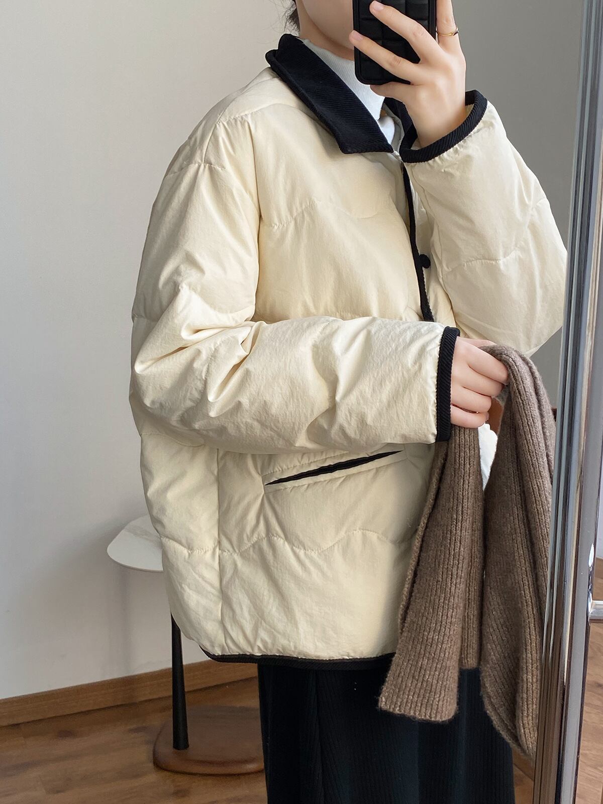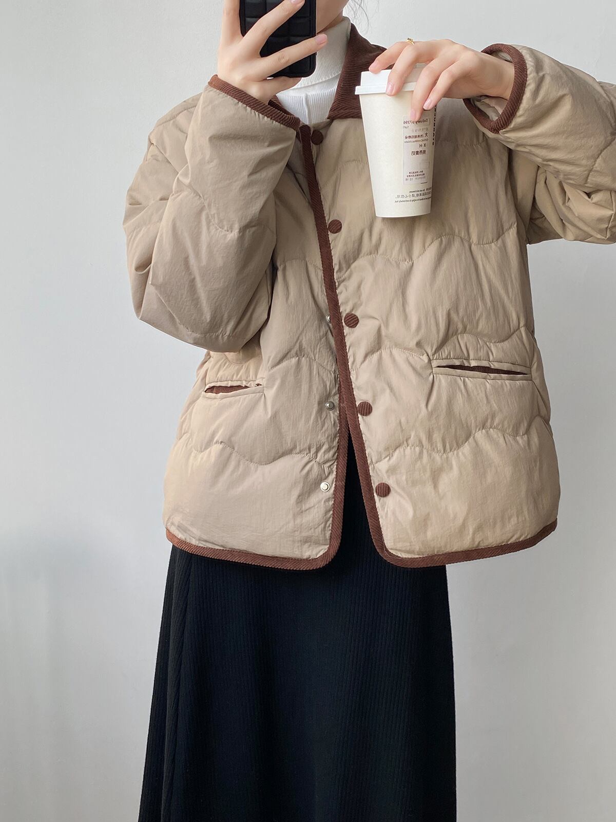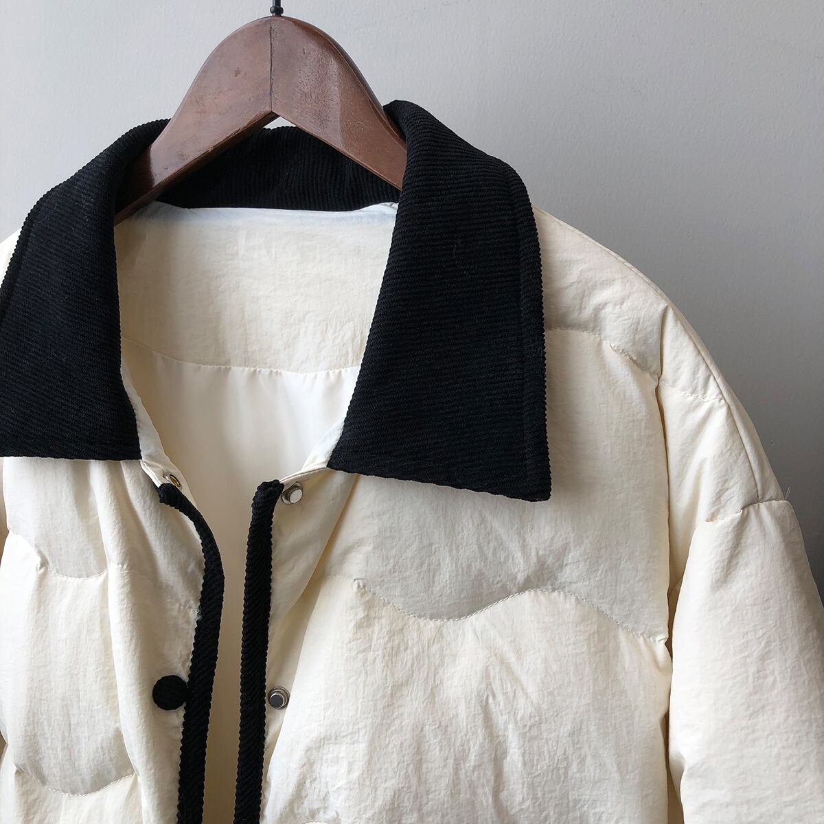 冬 ダウン ジャケット アウター 上着 ショート丈 袖あり 長袖 Vネック 襟付き シングルブレスト レギュラー ルーズ もこもこ ポケット 前開き ボタン ルーズウエスト 厚手 異素材MIX 普通生地(秋冬用) きれいめ カジュアル おしゃれ 大人女子 こなれ感 ガーリー 無地 秋 冬 10代 20代 レディース 女性用 ママ 女の子 OL 通勤 学生 通学 お出かけ 休日 イベント レストラン 普段使い ファッション 楽ちん 暖かい 防寒 インスタ映え M L ベージュ カーキ