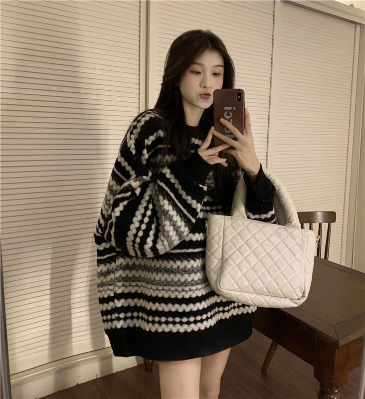 トップス ニット ボーダー オーバーサイズ ラウンドネック レディース ストライプ バイカラー オシャレ お洒落 かわいい 大人可愛い 10代 20代 30代 40代 着回し 重ね着 シンプル カジュアル ラフ ホワイト 白 ブラック 黒 華奢 細見え ゆったり 大きめ 春 秋 冬 抜け感 こなれ感 ショッピング レトロ アンティーク ヴィンテージ 柔らか 着心地 S М L あったか 暖かい ドロップショルダー ゆる ルーズ リラックス 体型カバー こなれ感 チュニック ワンピース ボリューム 袖